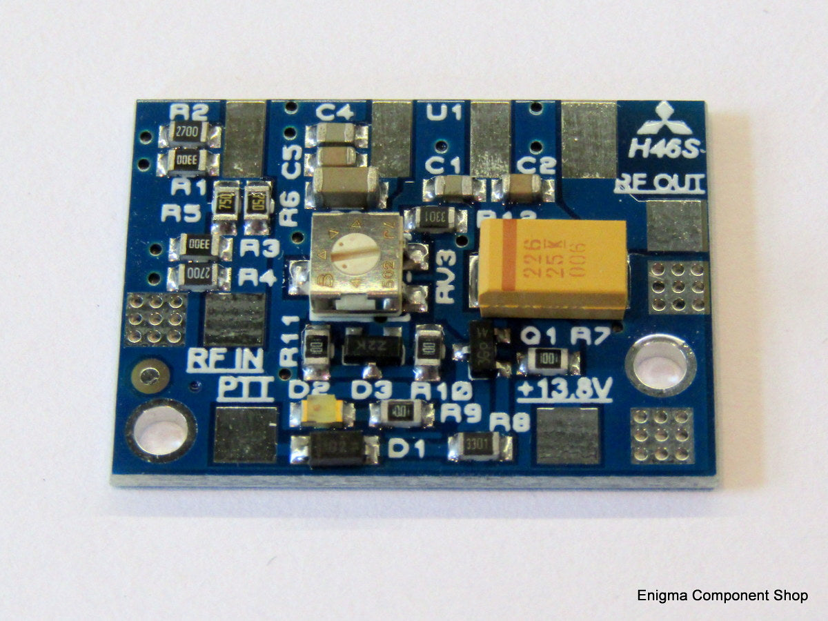 Die Enigma Broadcast H46S-Verstärkerplatine ist geeignet, um die notwendigen Verbindungen zu den kleineren Mitsubishi-Modulen der RA-Serie im H46S-Gehäuse bereitzustellen. Die meisten der RA07- und RA08-Serien werden von diesem Paket abgedeckt.