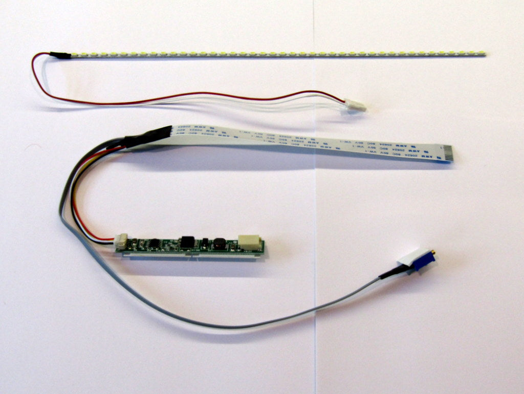 - LED-Streifen, LED-Treiberplatine und Kabelbaum mit Helligkeitsregelung