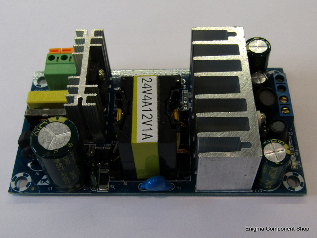 Module d'alimentation à découpage à double sortie à faible coût, avec entrée universelle 90-265 V CA et deux sorties, 24 V à 4 A et 12 V à 1 A avec jusqu'à 95 % d'efficacité.