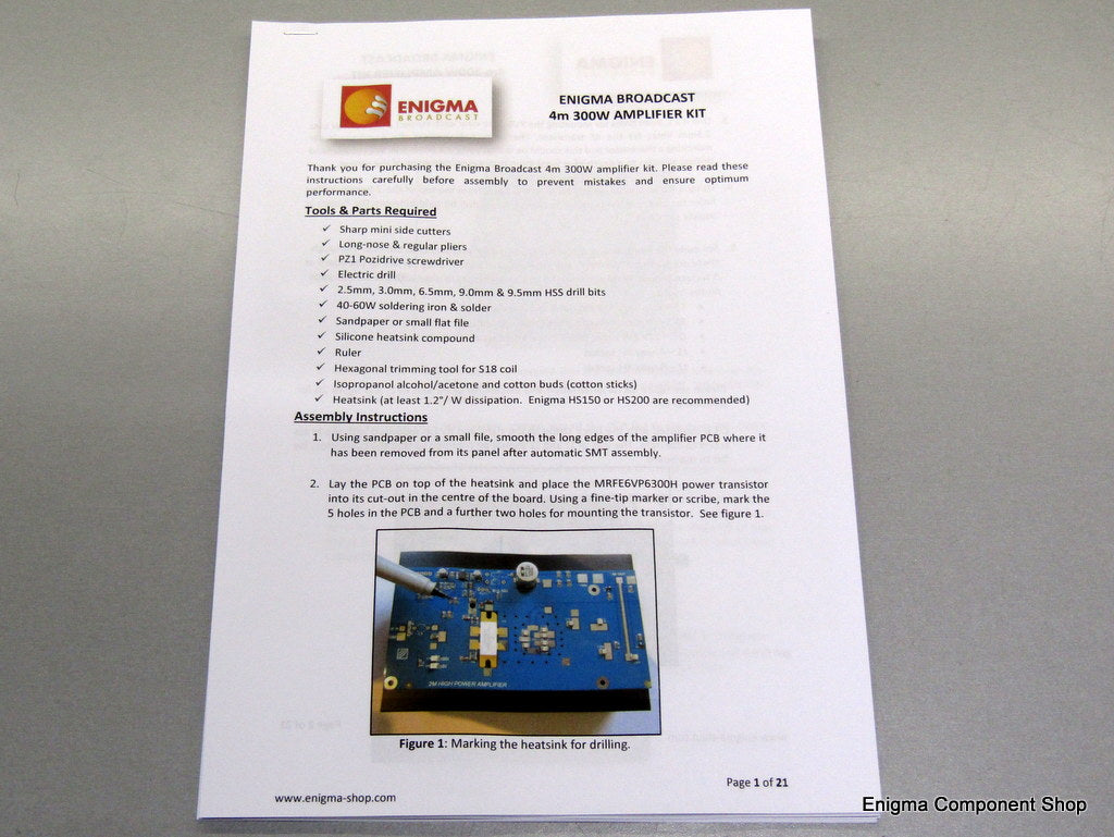 New for 2021 is our 4m 300W high power amplifier kit. This kit uses the same PCB as our popular 2m kit and has been retuned for optimum performance on the 70MHz band.