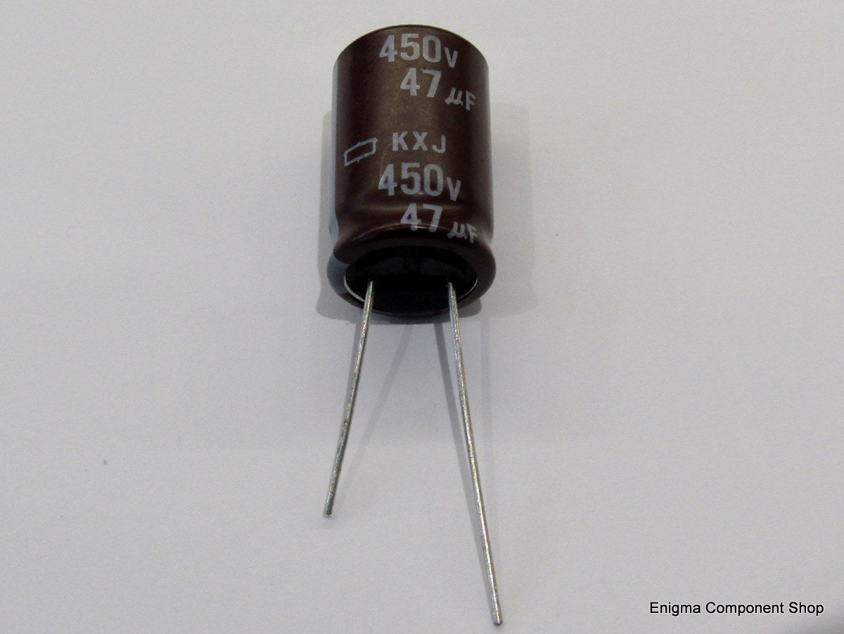 High temperature general purpose electrolytic capacitor. Value 47uF at 450V.