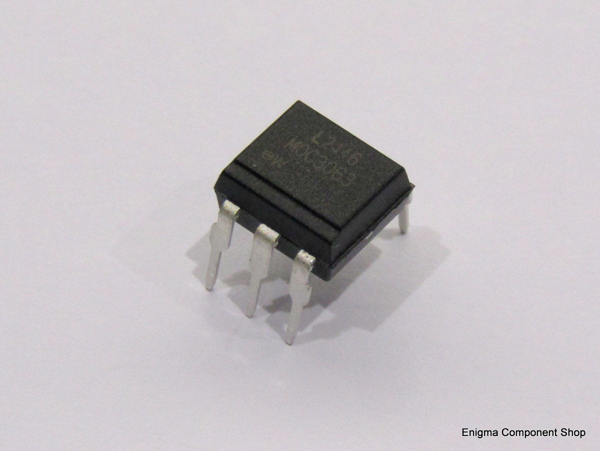 The Lite-On MOC3063 is a triac output optocoupler IC with zero crossing function. Housed in the leaded 6-pin DIL package.