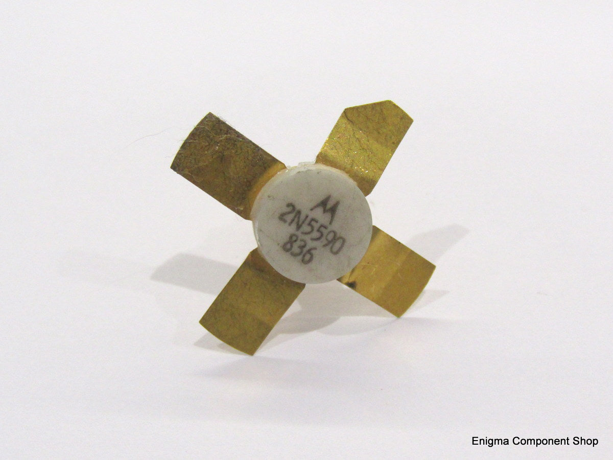 The Motorola 2N5590 is a 12.5V VHF NPN RF power transistor rated at 10W output to 175MHz. Housed in the leaded stud package.