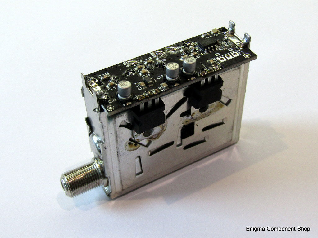 The Enigma Broadcast tracking satellite tuner module can be used from 850-1750MHz as a standalone receiver for the 33cm amateur band or from 10.6-11.5GHz with a 9.75GHz universal LNB connected to the input.
